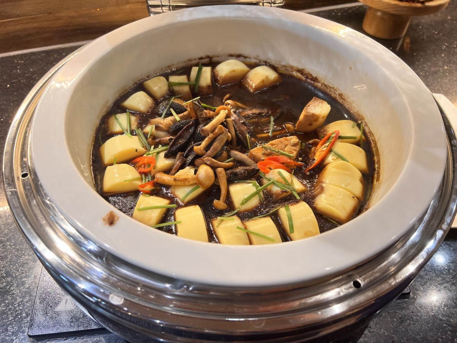 핫 음식은 모두 뚜껑이 닫혀 있어서 하나하나 열어서 확인해봤어요.